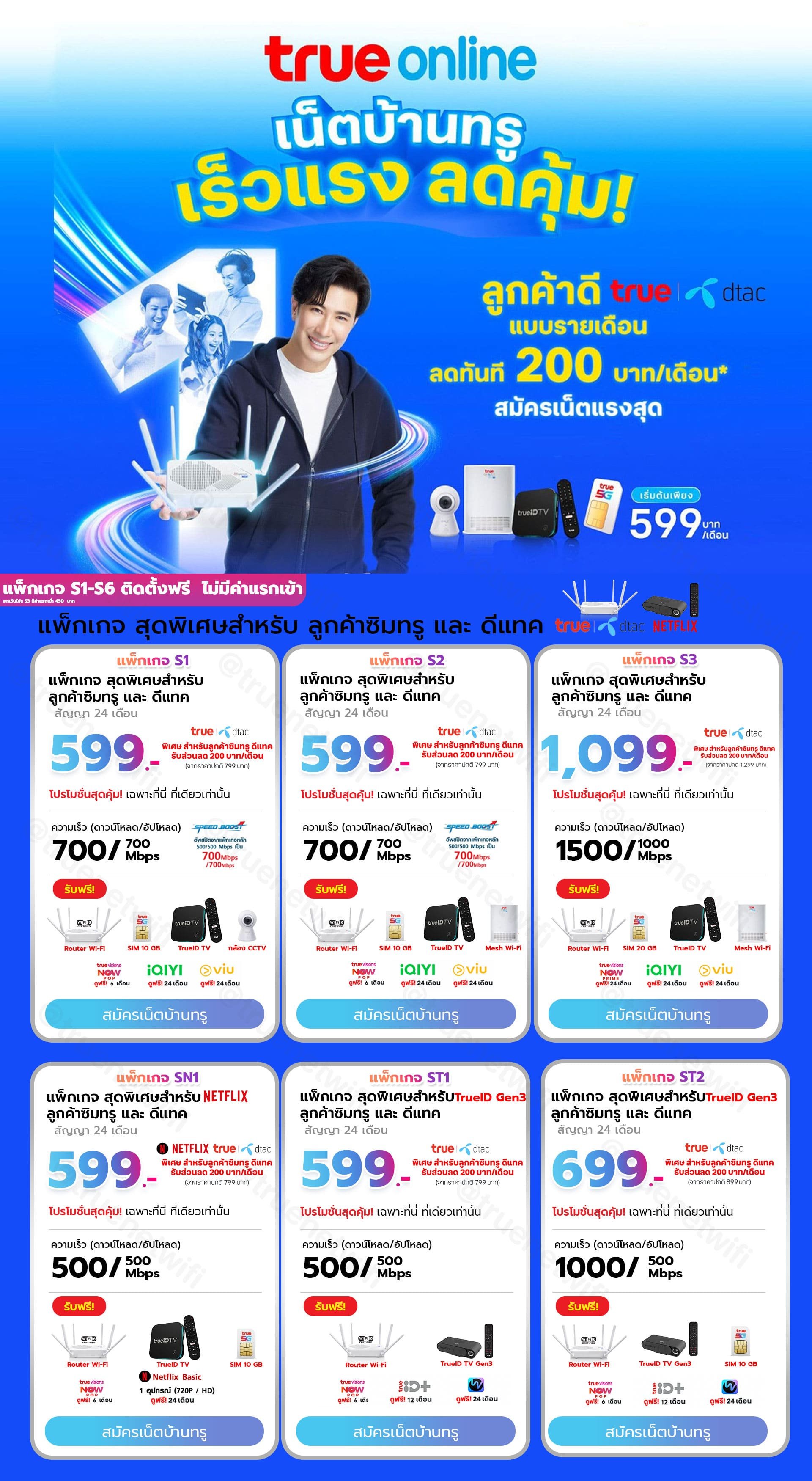 โปรโมชั่น เน็ตบ้านทรู แพ็กเกจพิเศษ สำหรับ ลูกค้าซิมรายเดือน ทรู และ ดีแทค