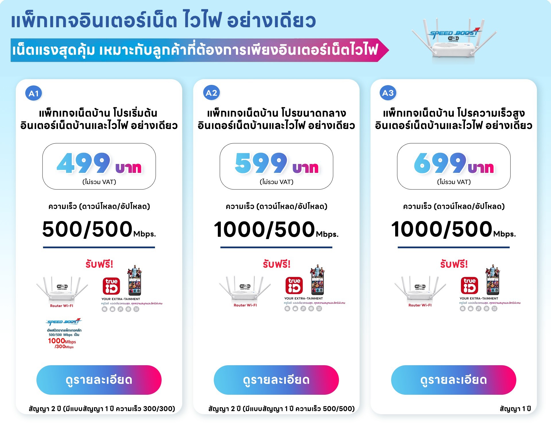 แพ็กเเกจแบบ 1 บริการ (อินเตอร์เน็ตเราเตอร์ไวไฟ อย่างเดียว)