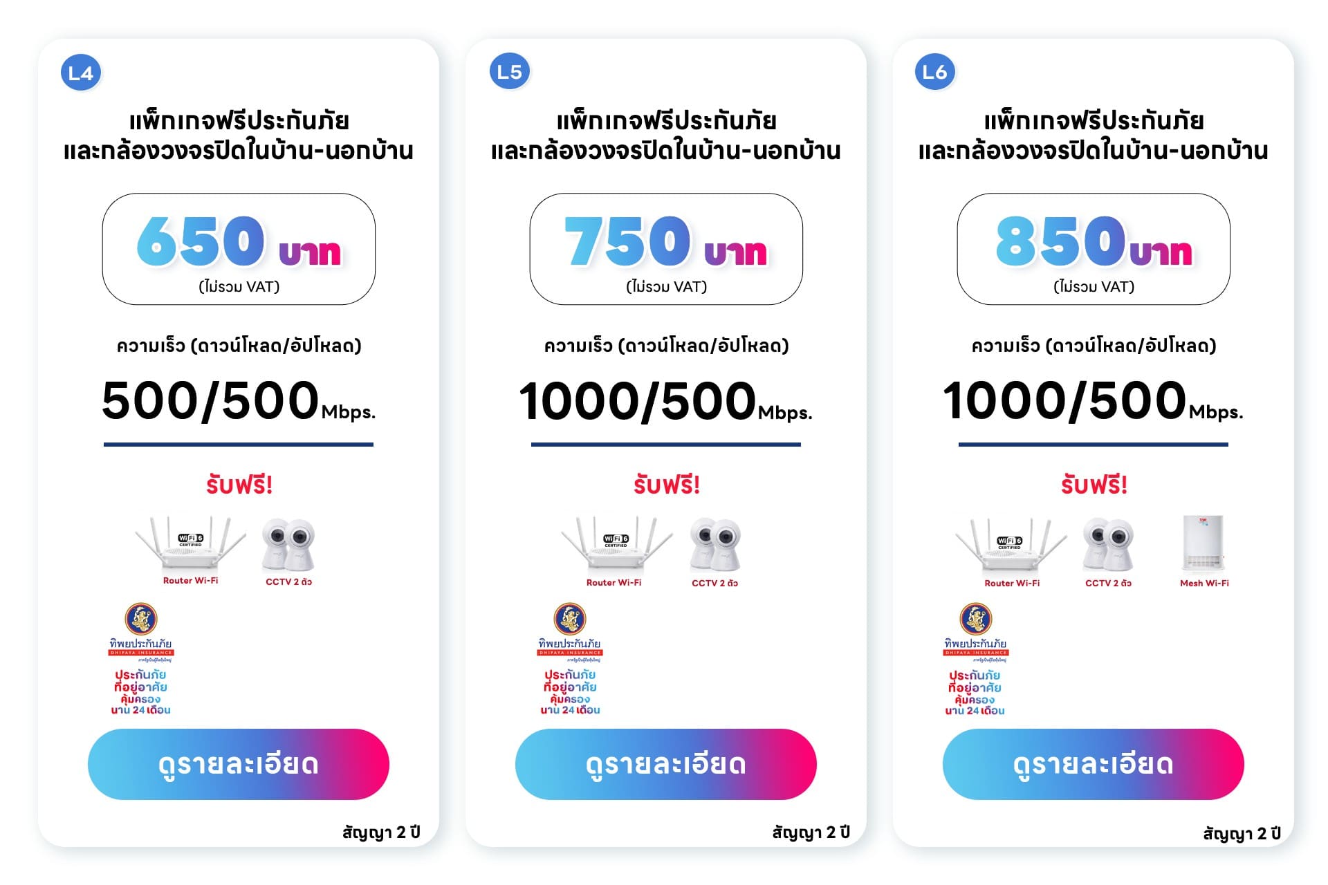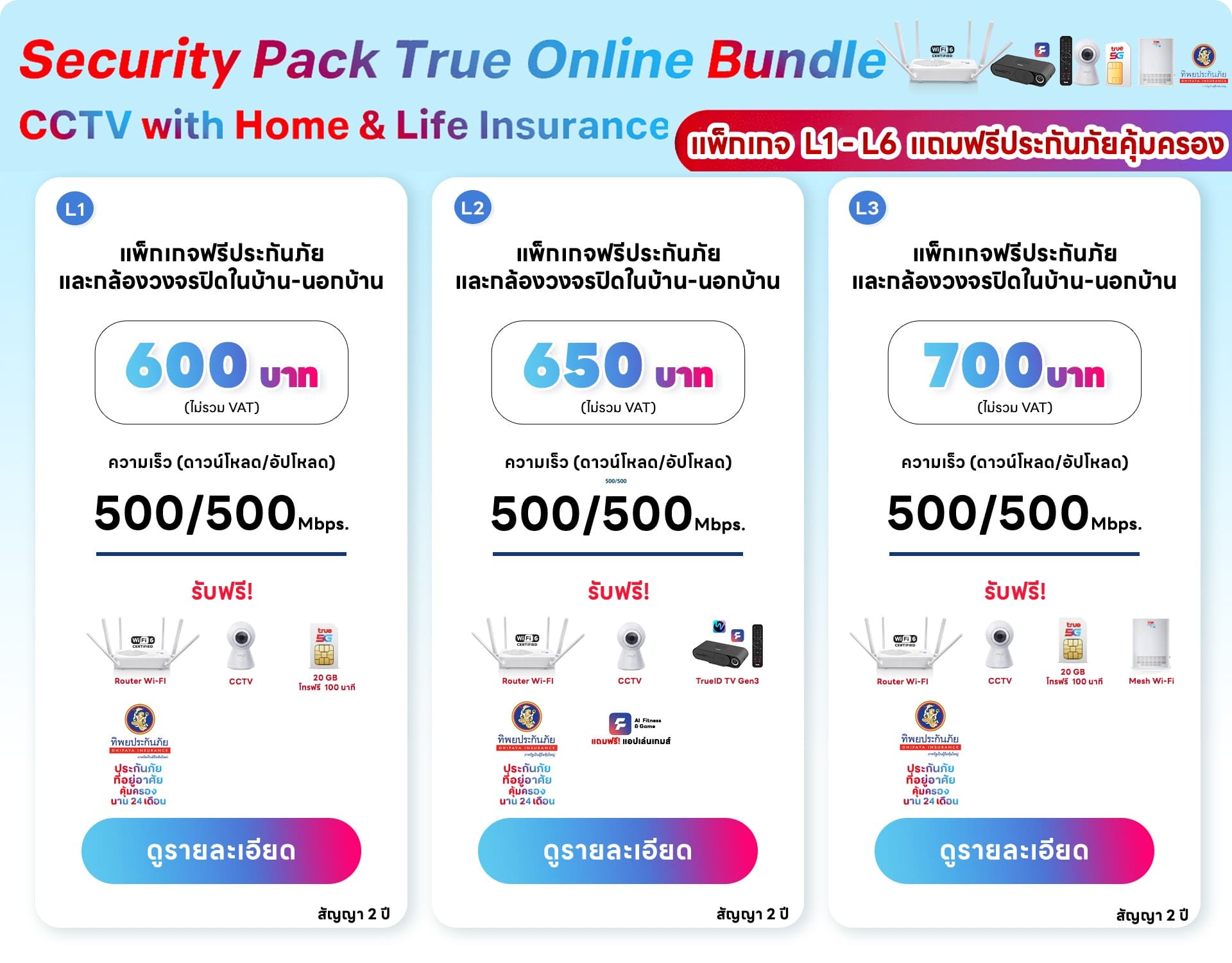 แพ็กเกจ L2 ราคา 650 บาท ( รวมภาษี 695.50 บาท)